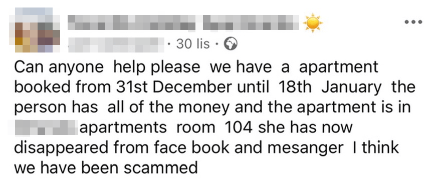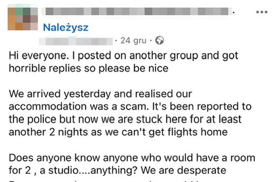 • Apartament… nie istnieje. Po przylocie nie ma ani kluczy, ani właściciela, ani mieszkania. Kontakt się urywa.